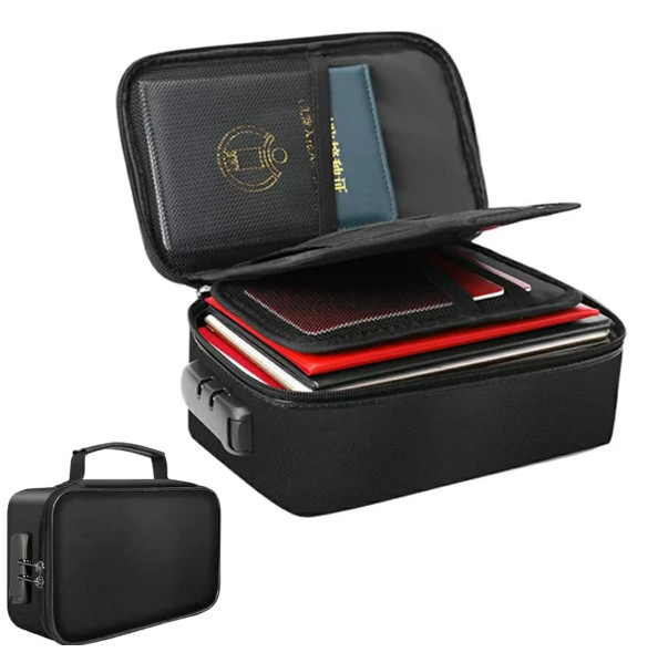 耐火ボード 収納ポーチ 耐火バッグ 書類ケース 持ち運び パスワードロック付き マルチケース 多層収納 貴重品入れ pc周辺小物用 ケーブル収納 配線収納 現金収納 集金袋 スマホ収納
