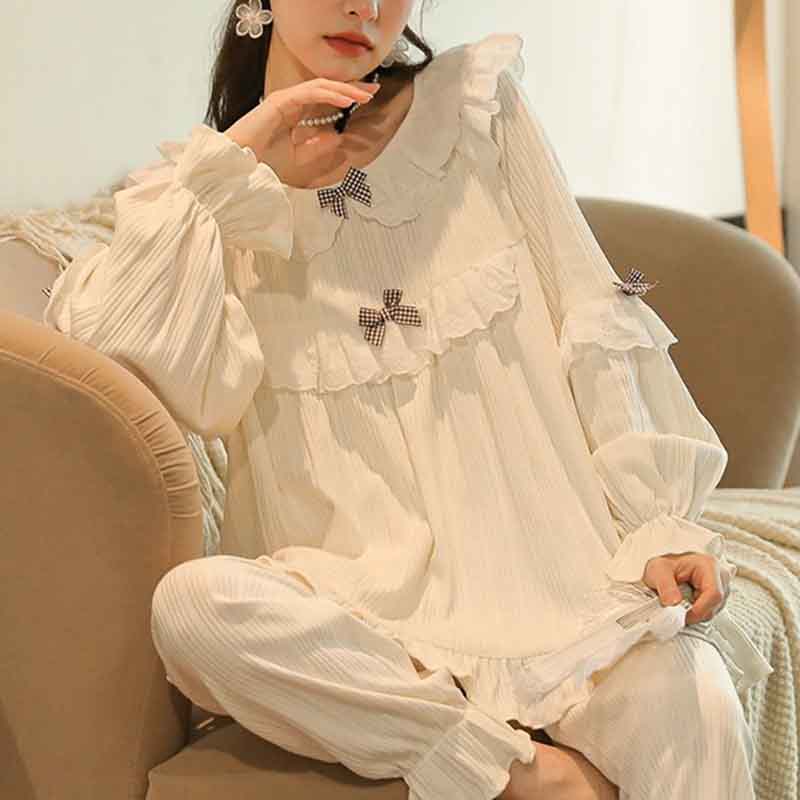 ガーゼ パジャマ 綿100% 春 夏 部屋着 セットアップ 前開き ボタン付き 長袖 ふわっと 可愛い 和風 かわいい 記念日 リラックス 涼しい 柔らかい 柔軟 ダブル 2重ガーゼ