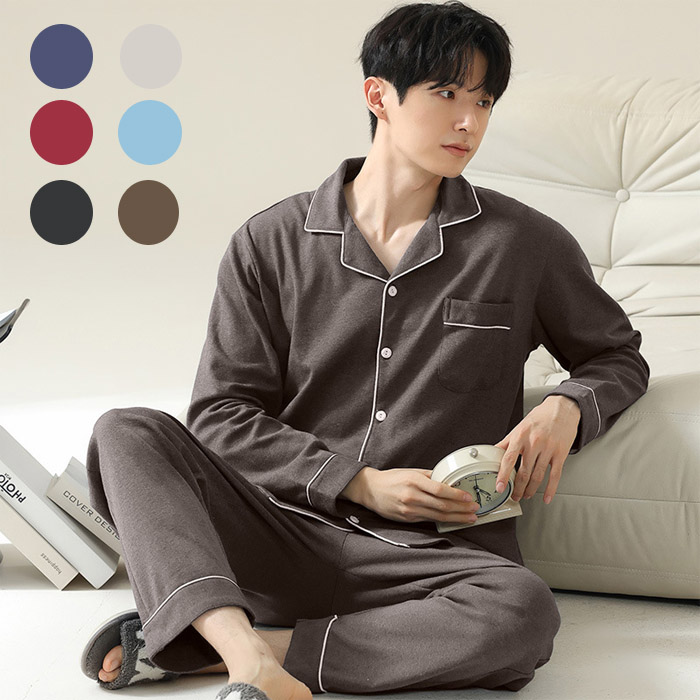 パジャマ メンズ 綿 部屋着 長袖 前開き ルームウェア 前開きインナー 下着 ナイトウェア メンズ ナイトウェア ルームウェア パジャマ
