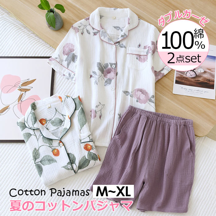 ダブル ガーゼ パジャマ 綿100% 前開き二重 可愛い 大人用インナー 下着 ナイトウェア レディース ナイトウェア ルームウェア パジャマ