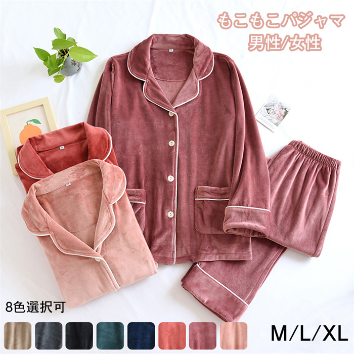 パジャマ レディース もこもこ ルームウェア 長袖 タートルネック 前開き 上下セット ロングパンツ 部屋着 寢巻き 軽い 暖かい 可愛い 春秋冬 M-2XL