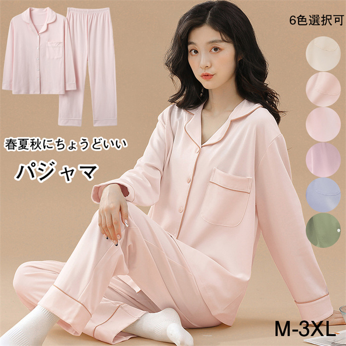 パジャマ レディース 綿 ルームウェア 長袖 上下セット 前開き ゆったり 部屋着 入院着 吸汗通気 肌に優しい 春夏秋冬用 M-3XL