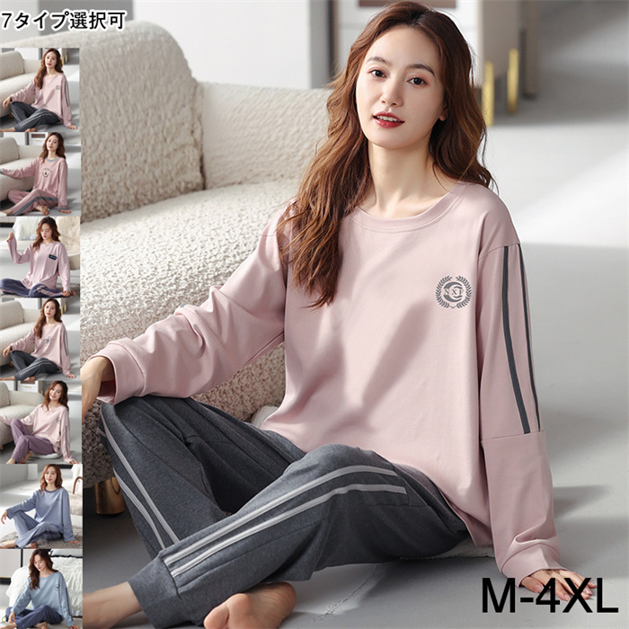 パジャマ レディース ルームウエア 春夏秋 薄手 丸首 長袖 快適 寝間着 ゆったり 2点セット ピンク 柔らかい 通気