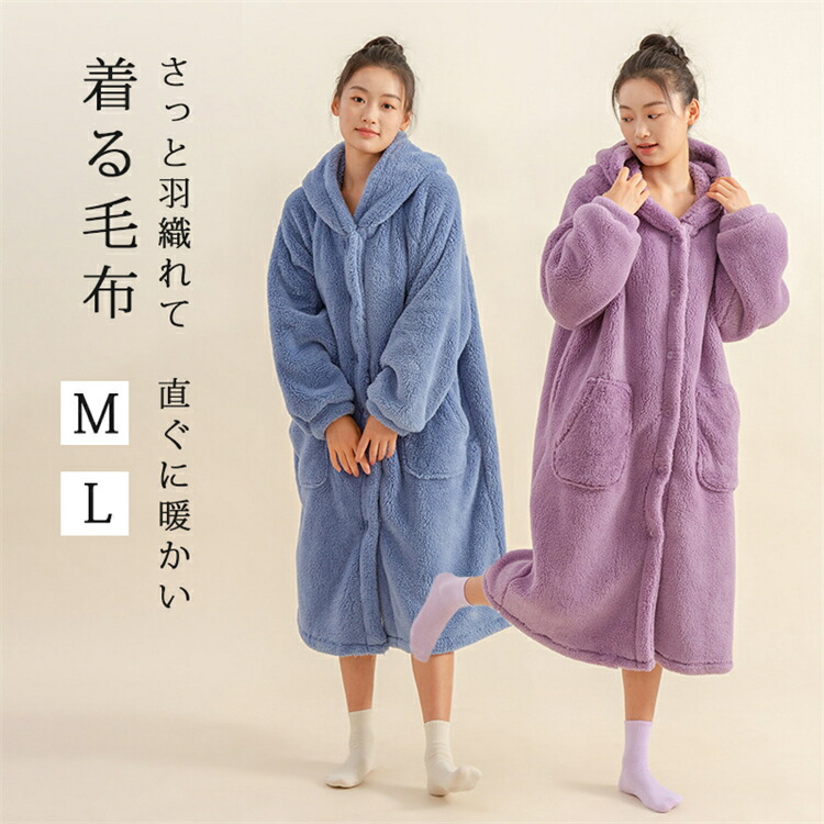 着る毛布 ロング丈 ナイトガウン レディース ロング ルームウェア もこもこ 冬 大きいサイズ 秋冬 可愛い 部屋着 暖かい 可愛い あったか ふわふわ 冬用 裏起毛 大人