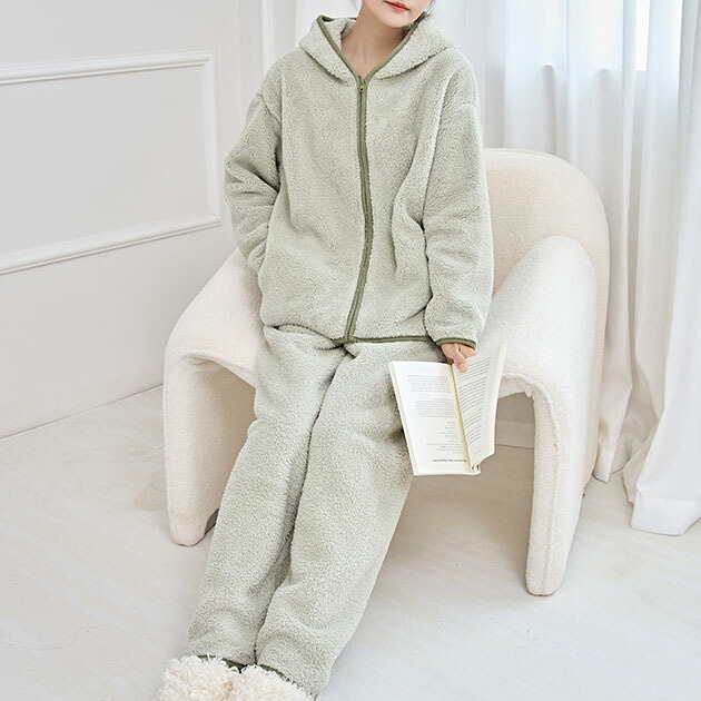 ソリッドカラー ふわもこ ジップアップ フーデット ルームウエア 女性 レディース 女子 部屋着 パジャマ 秋 冬 パーカー カーディガン 羽織り 定番 ベーシック 大人 単色 無地 フリース ふわふ