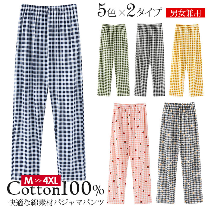 選べるチェック柄 小花柄 パジャマパンツ 綿100% 部屋着 オールーシーズン キレイめ ふわっと天然綿素材リラックス ルームウエア