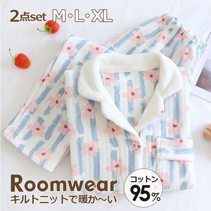 キルト パジャマ 綿 パジャマ レディース 冬 キルト ルームウエア セットアップ パジャマ キルトニット キルトニット素材で通気せもあり、花柄大好き