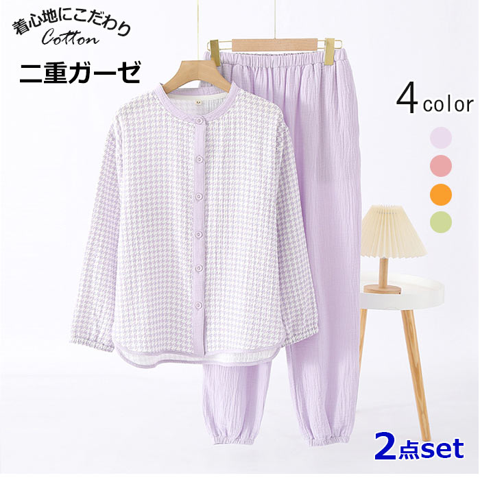綿長袖長ズボン可愛い前開きダブルガーゼパジャマ上下セット花柄 春夏優しい肌着 入院準備パジャマインナー 下着 ナイトウェア レディース ナイトウェア ルームウェア ルームウェア 上下セット
