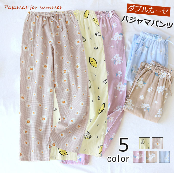 選べる5柄 ダブルガーゼパジャマパンツ、年中使える快適な一枚 インナー 下着 ナイトウェア レディース ナイトウェア ルームウェア ルームウェア ボトムス