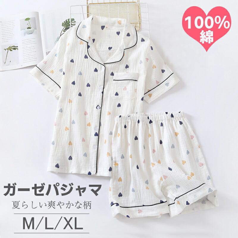 コットン100% 二重ガーゼ パジャマ 上下セット 半袖 半ズボン 部屋着 ルームウエア レディース パジャマ 柔らかい 前開き