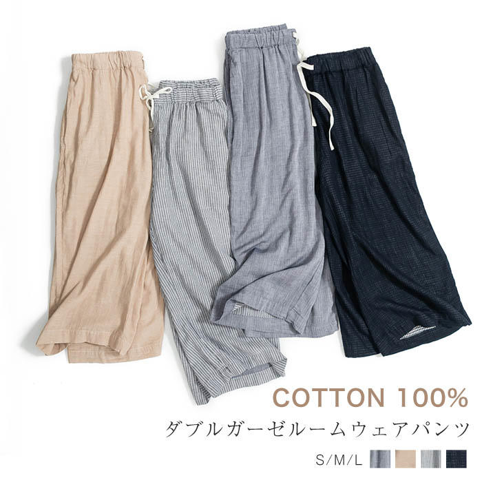 ダブルガーゼ ルームパンツ パジャマパンツ レディース 春 夏 長ズボン ボトムス パンツ パジャマ 二重ガーゼ 綿
