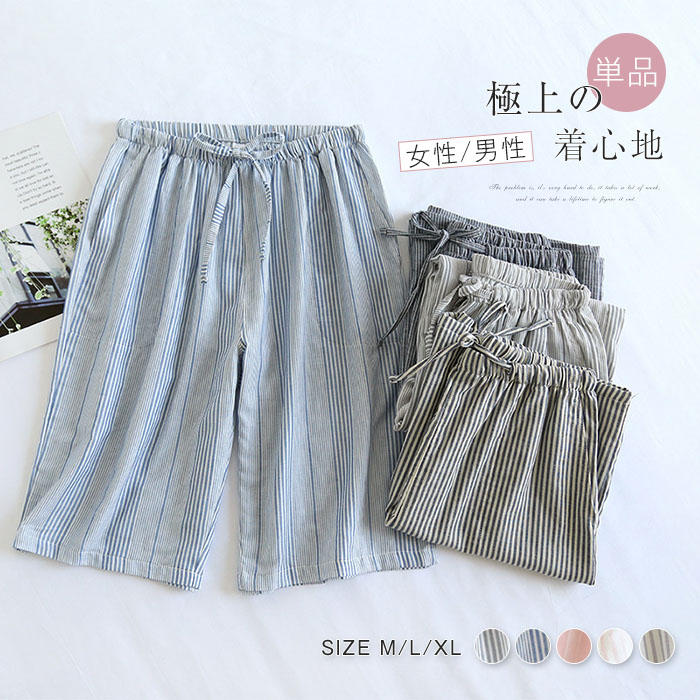 綿100% ガーゼ ルームウェア レディース 夏 七分丈パンツ ルームウェア ワイドパンツ コットン パジャマ イージーパンツ パジャマ 夏 単品 レディース 部屋着 快適 柔らかい リラックス