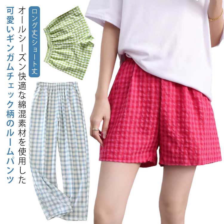 春 ルームパンツ 部屋着 ロング丈 ショート丈 秋 夏用 部屋着 ルームウェア ホームウェア ナイトウェア ワンマイルウェア ズボン 可愛い チェック柄 パンツ
