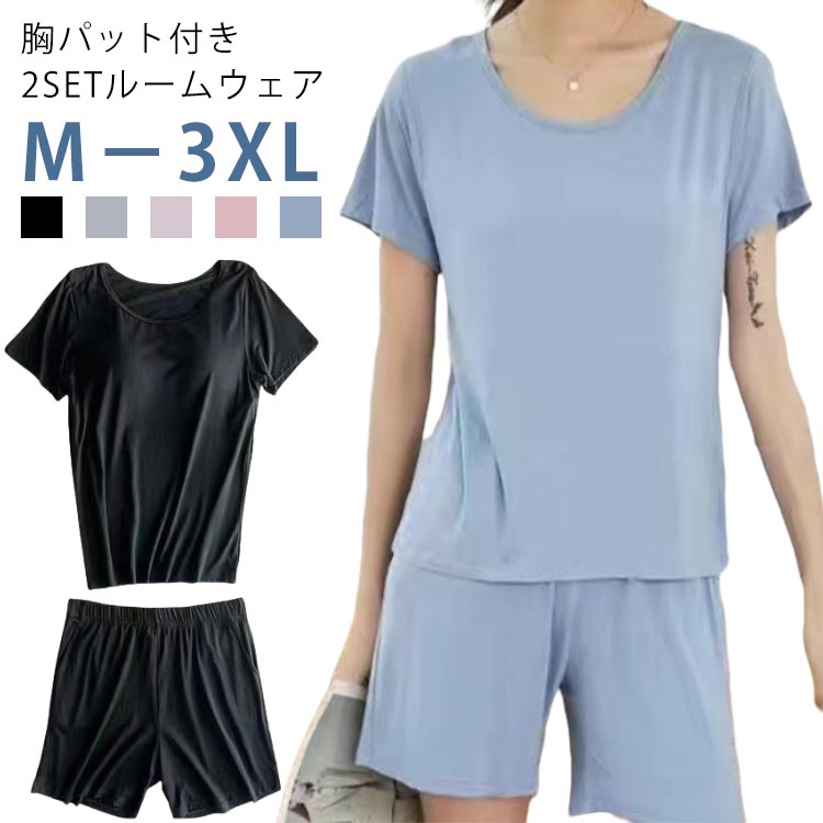 Tシャツ レディース ルームウェア セットアップ ショートパンツ 春 夏 スウェットインナー 下着 ナイトウェア レディース ナイトウェア ルームウェア ルームウェア 上下セット