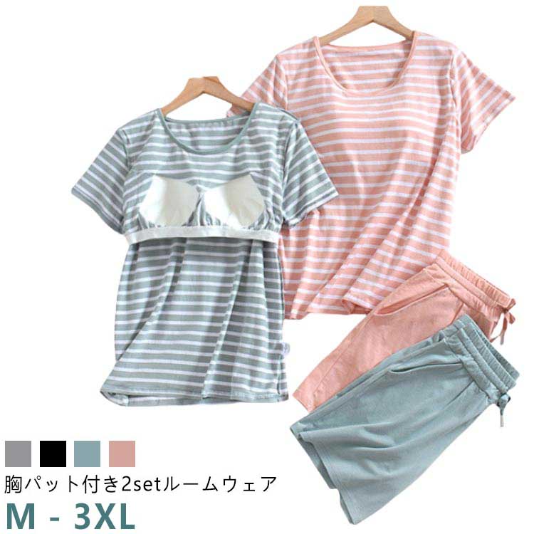 ランジェリー 介護 半袖パジャマ マッサージカップ ルームウェア 20代 ブラ付き 快適 上下セット モーデル 薄手 通気性 寝間着 女性 寝巻き 30代 40代 ママ 春夏 夏用 楽ちん カップ付