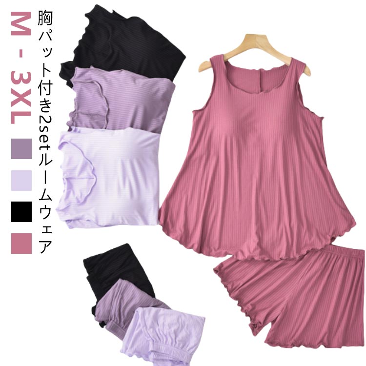 カップ付 上下2点セット 20代 ライン ランジェリー フレア裾 袖なし フリル リブ 寝間着 寝巻き 薄手 通気性 快適 40代 女性 30代 ライン ママ 春夏 ブラ付き