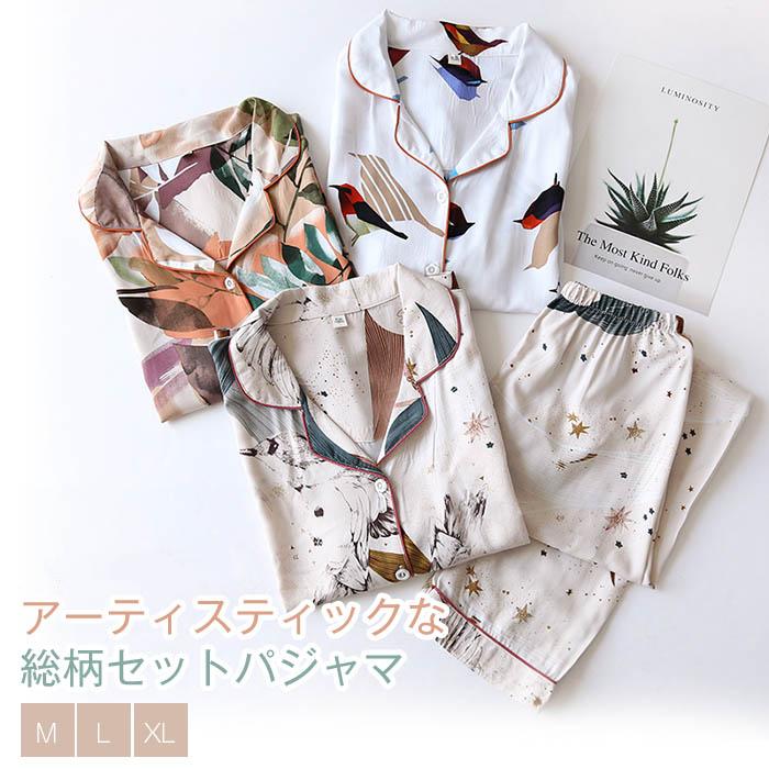 女性らしい花柄デザインが可愛く、柔らかい素材感が着用しやすくリラックス出来ます パジャマセット レディース 薄手 春夏 ナイト ルームウェア レディース おしゃれ