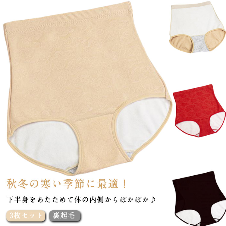 ショーツ 3枚 セット ハイウエスト 裏起毛 下着 秋 冬 レディース 腹保温 温活 防寒 ハイウエストショーツ 腹巻ショーツ 腹巻パンツ おなかすっぽり 大きいサイズ 締め付けない 美尻 桃尻