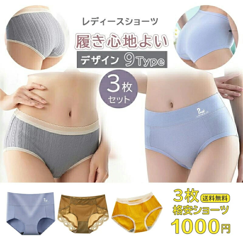 3枚セット ショーツ レディース 下着 パンツ 消臭抗菌 ストレッチ肌に優しい ハイウエスト スタンダード レギュラーショーツ 綿混 コットン 下着インナー 快適 ヒップアップ 下