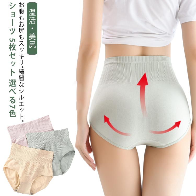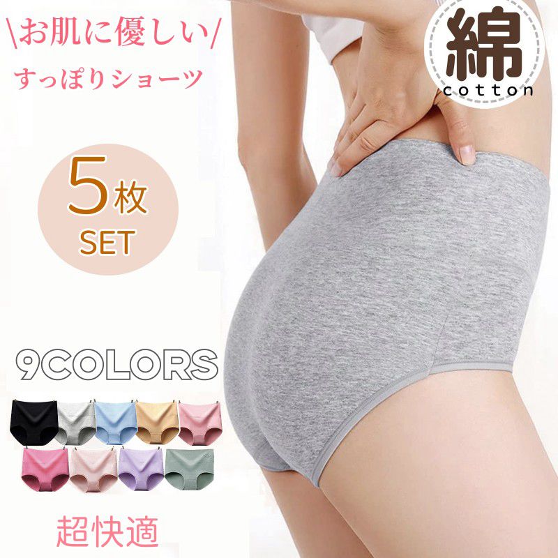 ハイウエストショーツ 5枚セット 深ばき お腹 引き締め お尻すっぽり 無地 女性 下着 温 対策 お腹スッポリ温活ショーツ