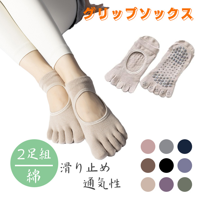 ピラティスソックス 滑り止め 5本指 レディース ヨガソックス 2足組 滑り止めグリップソックスダンス 吸湿速乾 抗菌防臭 春夏秋冬