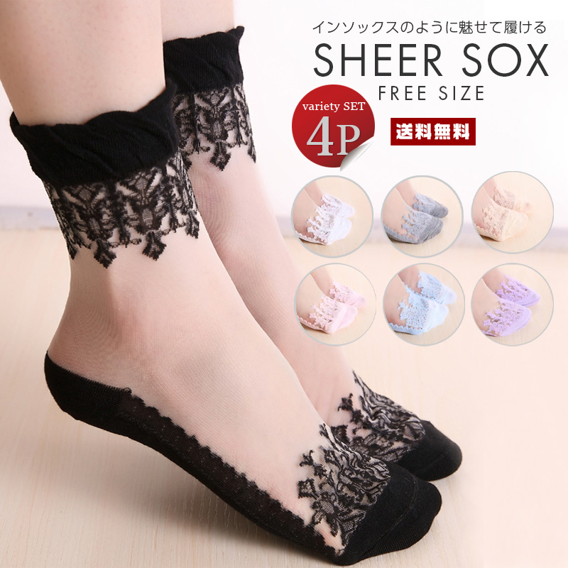 4足セット レース ソックスインナー 下着 ナイトウェア レディース 靴下 レッグウェア 靴下
