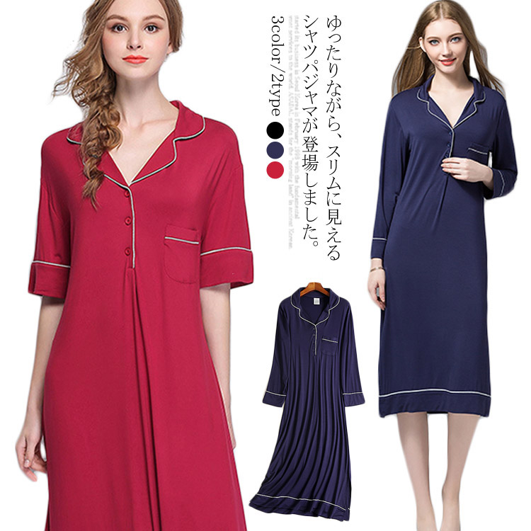 ネグリジェ シャツパジャマ 襟付き 長袖ワンピース 半袖 寝巻き 入院 マタニティ 産後 ゆったりインナー 下着 ナイトウェア レディース ナイトウェア ルームウェア ネグリジェ