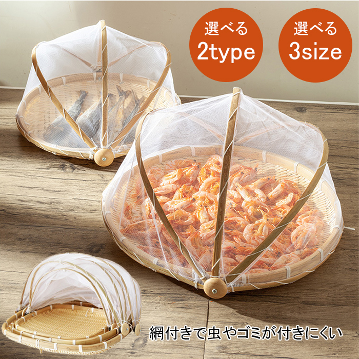 水切りザル 角型 丸型 干しざる ネット付 ざる ザル 網付き 盆ざる 丸型 かご 干し野菜 一夜干し 竹ざる 防虫ネット