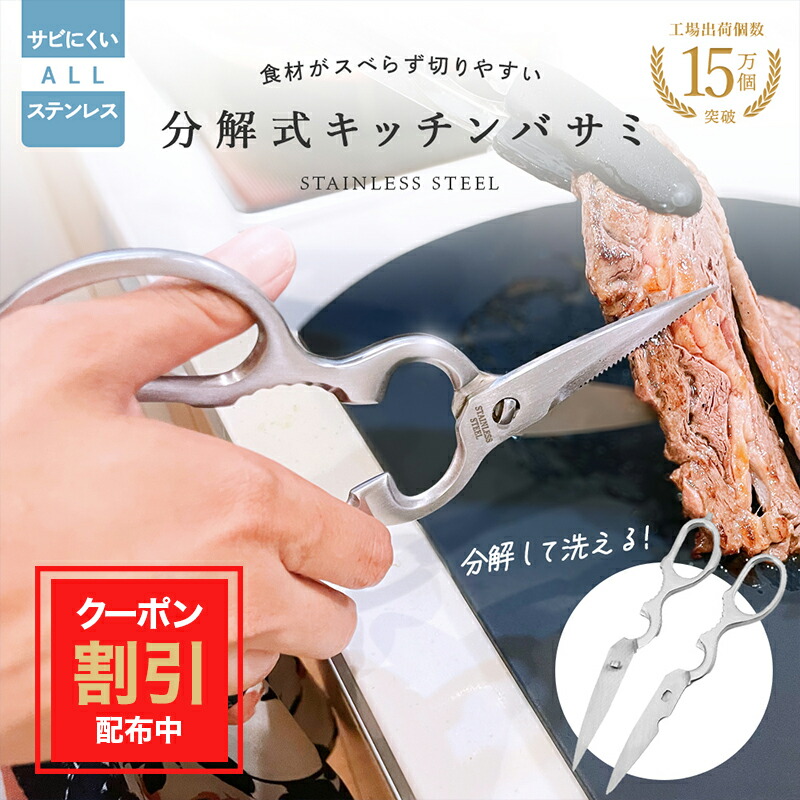 ステンレス 分解 キッチンばさみ 食洗機対応 キッチンハサミ 料理はさみ 洗浄 衛生的 オールステンレス アウトドア キャンプ 栓抜き 缶開け 調理ハサミ 料理用ハサミ