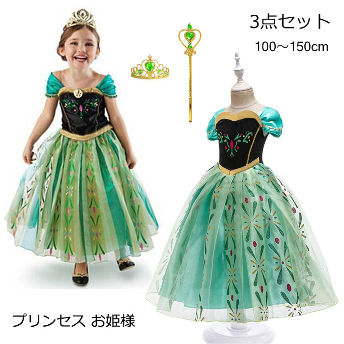 憧れの雪のプリンセスになりきり♪ティアラ スティックが付属のお姫様ドレス衣装ホビー コスプレ 変装 仮装 コスチューム一式