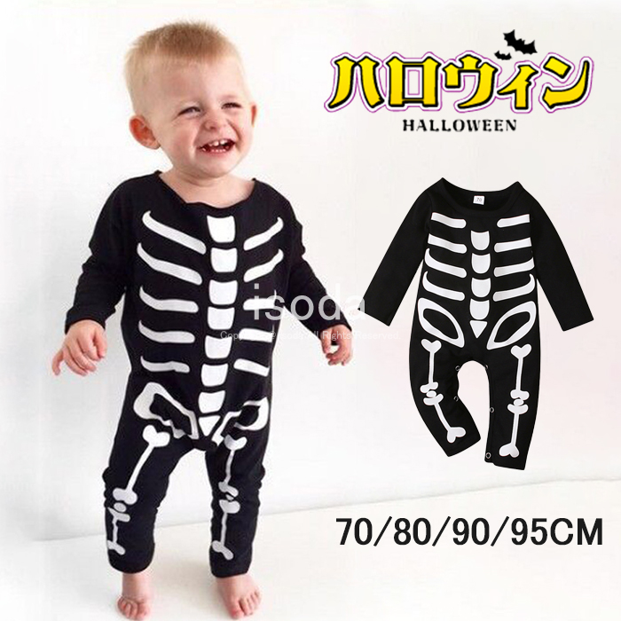 ハロウィン衣装 70 80 90 95 コスチューム がいこつロンパース ハロウィン カバーオール 子供服