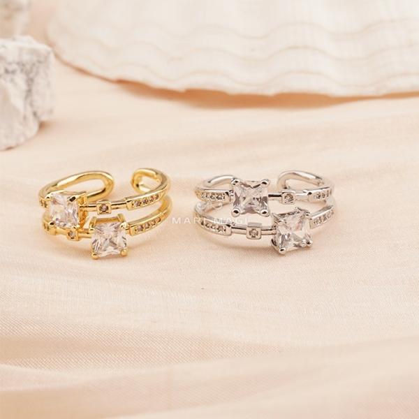 マリマギ リング 指輪 マルチビュー オープン レディース クリアー ゴールド ミックス ゴールド シルバー シンプル デザイン 重ね着け 人気 流行 まりまぎ