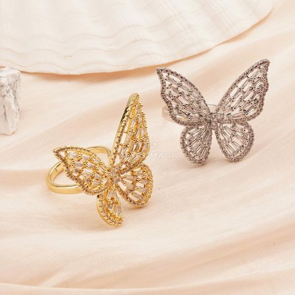 MARI MAGI リング 指輪 重ね付け 一本付け フリーサイズ バタフライ 蝶々 スワロフスキー 彼女 奥さん 誕生日 プレゼント ギフト かわいい おしゃれ