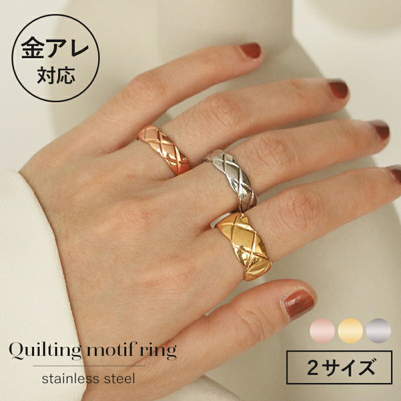 リング シルバー ゴールド ピンクゴールド 贈り物 プレゼント 金属アレルギー 対応 サージカルステンレス キルティング