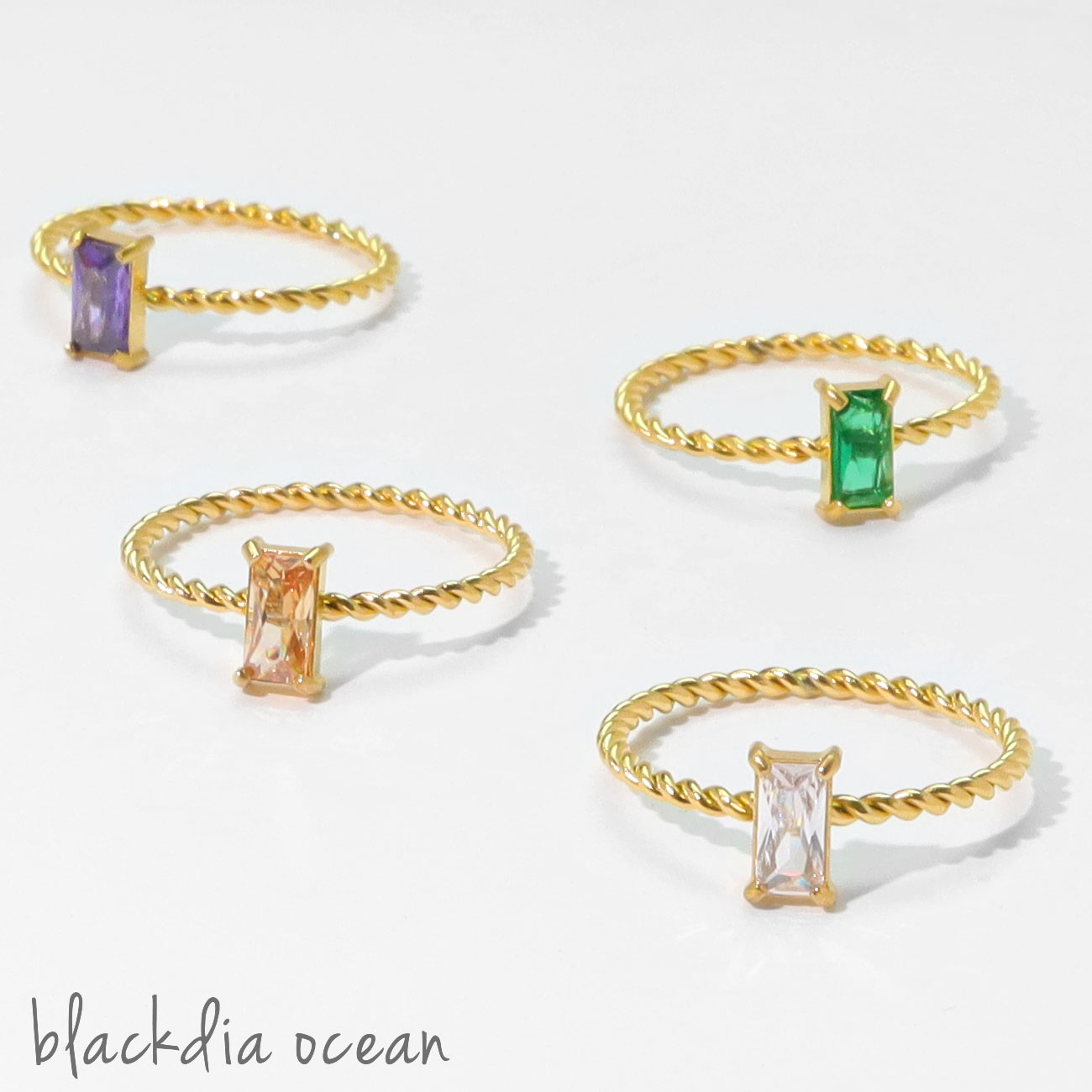金属アレルギー対応 ステンレス スクエアデザイン ストーン シンプルリング ブランド blackdia ocean プレゼント ギフト 女性用 ラッピング 無料