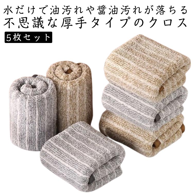 油汚れクロス キッチンクロス 5枚セット ふわふわ 洗剤不要 洗剤いらず 洗剤いらずキッチン用品 食器 調理器具 配膳用品 キッチンファブリック ふきん カウンタークロス