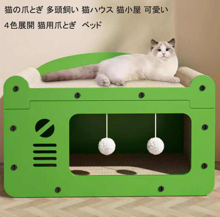 猫ペット キャットダンボールハウス 猫ハウス 猫小屋 段ボール 猫スクラッチボド 研削爪 猫用爪とぎ ペットハウス 通気 爪とぎ兼ベッド 爪研ぎハウス ストレス解消 通気 多頭飼い