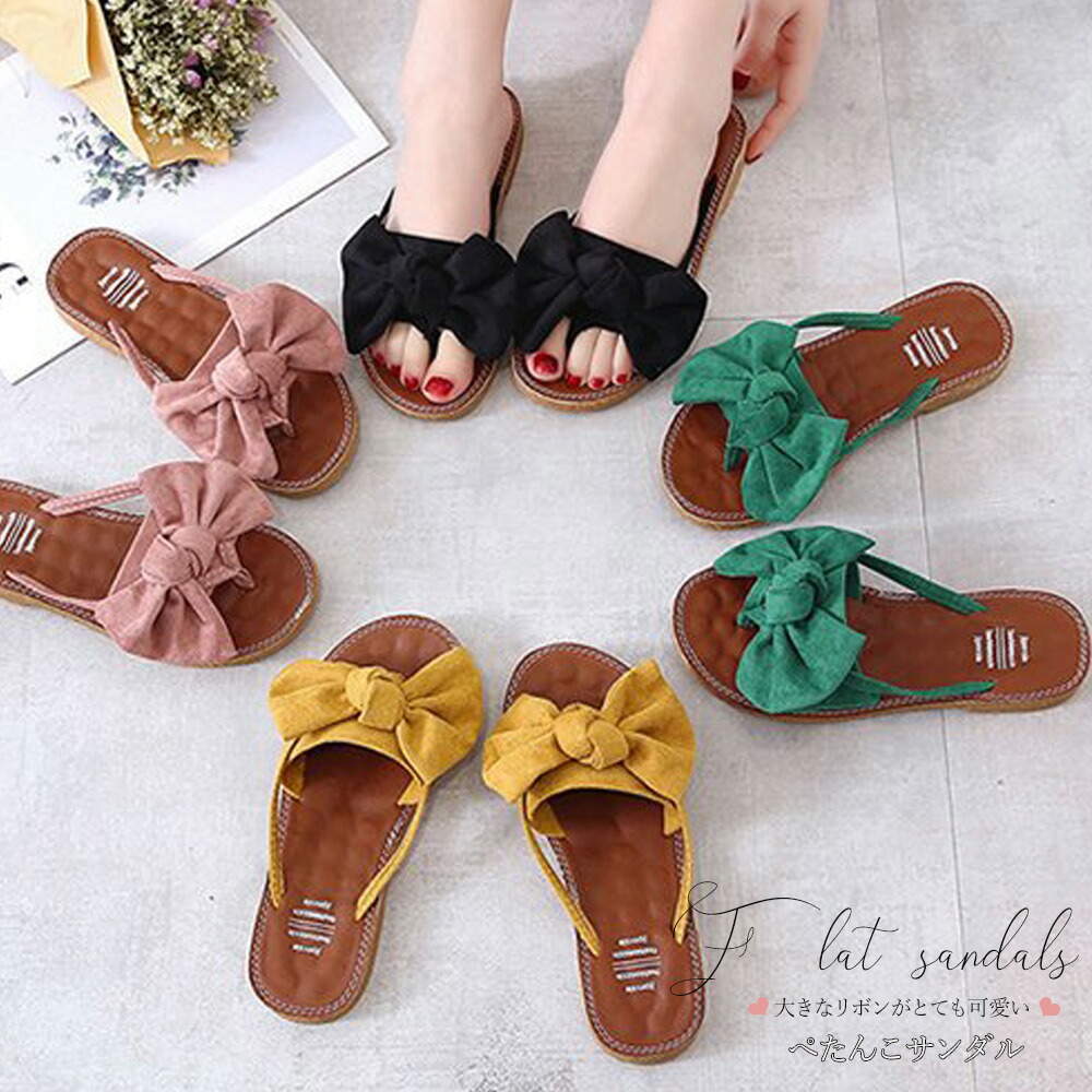 フラットサンダル レディース ビッグリボン コンフォートサンダル ぺたんこ靴 レディース靴 サンダル その他