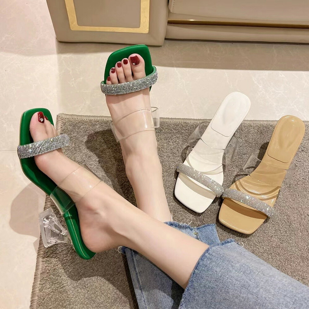レディース デザインヒール クリアサンダル 履きやすい サマーサンダル きれいめ透明ミュールサンダル 春夏 大人可愛い上品