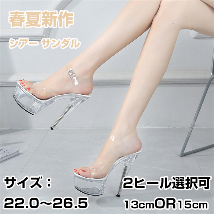 2023春夏新作 シースルー シアー サンダル ヒール13 ヒール15 ピンヒール レディース 透明 春夏 チュール 履きやすい 透け 大きいサイズ 22.0~26.5