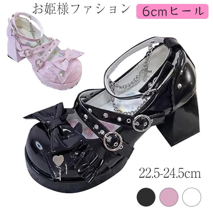 レディース パンプス ロリータ 靴 厚底ブーツ ロリータ靴 厚底シューズ 太ヒール 学生靴 変装 ゴスロリ お嬢様 コスプレ 6ヒール お嬢さん
