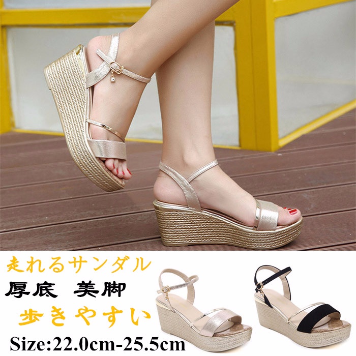 サンダル 厚底 ウェッジソール レースアップ ヒール7cm 小さいサイズ リボン付き 着心地よい レディース 靴 さんだる 海 大量注文にも対応しています