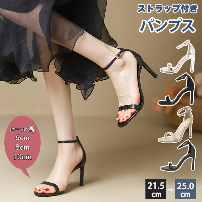 ストラップサンダル 美脚 字フック 小さいサイズ 大きいサイズ 夏 おしゃれなデザイン 美脚パンプス ハイヒール ベルト付き ストラップ付きパンプス 黒 白 シルバー 長脚効果