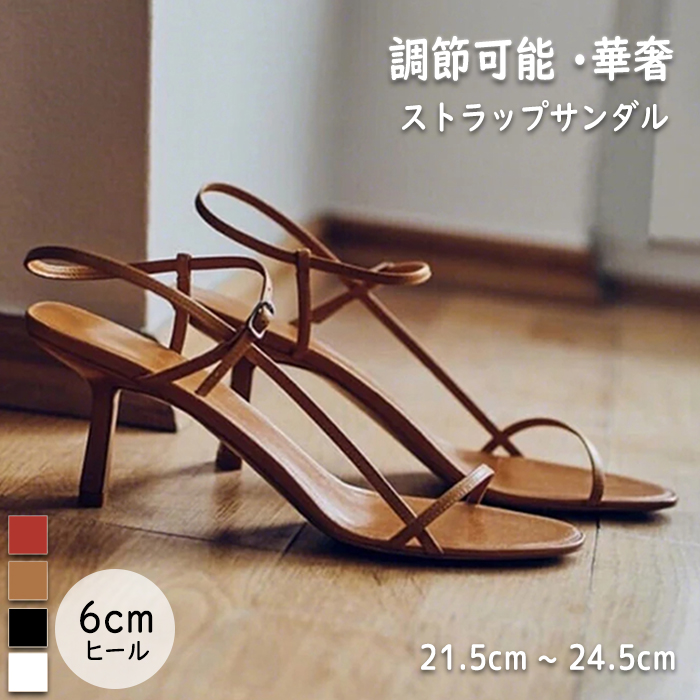 サンダル 調節可能 ミドルヒール 合成ゴム 軽量 夏 女性用 美脚 細いヒール 高級感 華奢 シンプル メモリフォーム 痛くない 通勤 仕事 結婚式 細ストラップ きれいめ おしゃれ