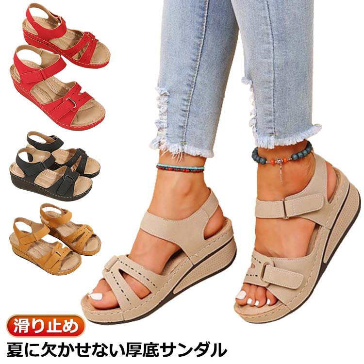 美脚 コンフォートサンダル 内寸225~265 シンプル 厚底 滑り止め靴 レディース靴 サンダル コンフォートサンダル