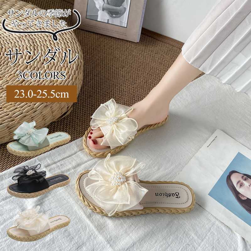 3A21 ツイスト フラットサンダル リボン花柄登場 かわいい サンダル ローヒール 美脚靴ビーチサンダル ストラップサンダル レディース ぺたんこ 夏 トレンド バーゲン
