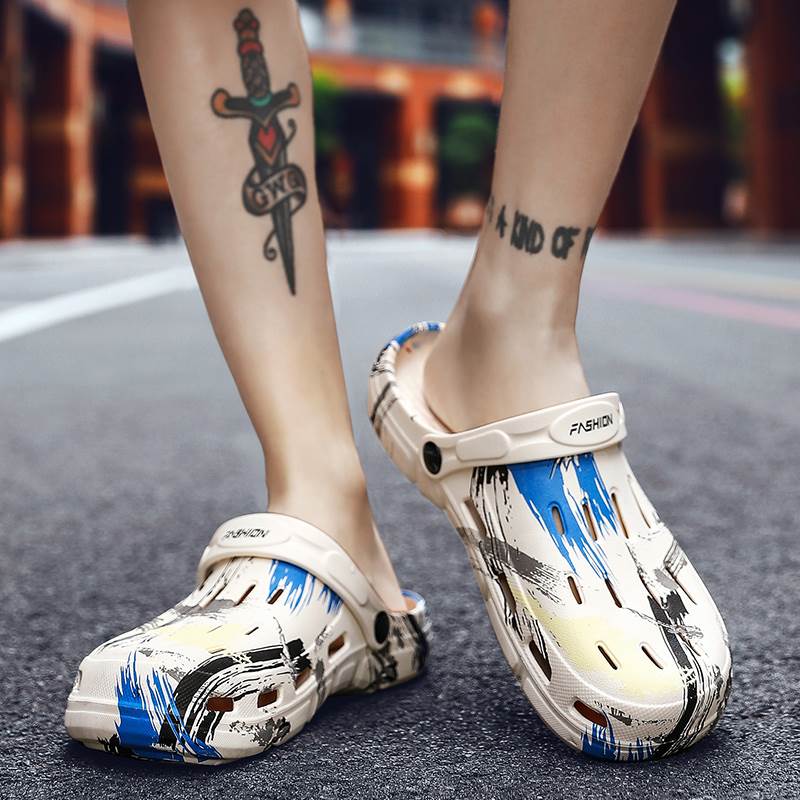 ビーチサンダル スリッポン メンズ 個性的 履きやすい 歩きやすい ペンキ デザイン ベージュ 黒 青 軽量 ぺたんこ フラット ラフ カジュアル おしゃれ クール かっこいい ボーイッシュ