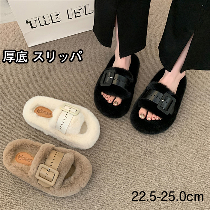 厚底シューズ スリッパ 冬 レディース プラッシュ 秋冬 おしゃれ ウォーム 外貿毛スリッパ 滑り止め アウトドア 身長アップ 切り替え 個性バックル ルームシューズ 暖かい