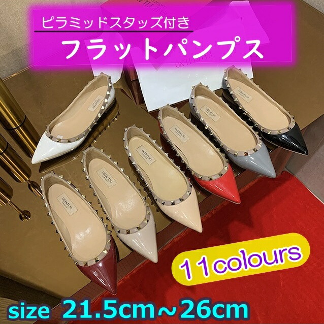 フラット シューズ レディース パンプス ぺたんこ スタッズ ポインテッドトゥ バイカラー 大人可愛い きれいめ シンプル カジュアル おしゃれ 履きやすい 個性的 美脚 女子会 デート ラン