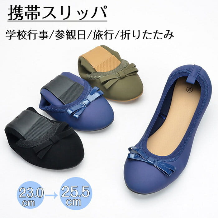 携帯スリッパ レディース 折りたたみ 学校行事 参観日 旅行 フォーマル で 洗える スリッポン バレエシューズ タイプ スリッパ 室内 上履き